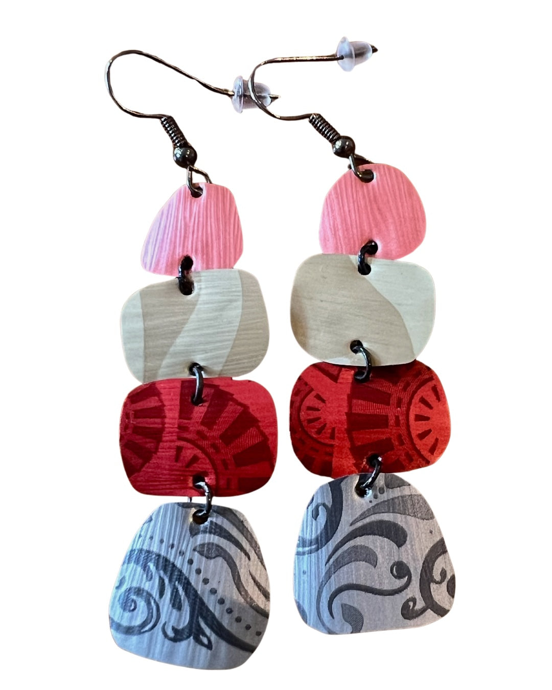 HANDCRAFTED STATEMENT EARRINGS | RED, GOLD + GREY SHADES
