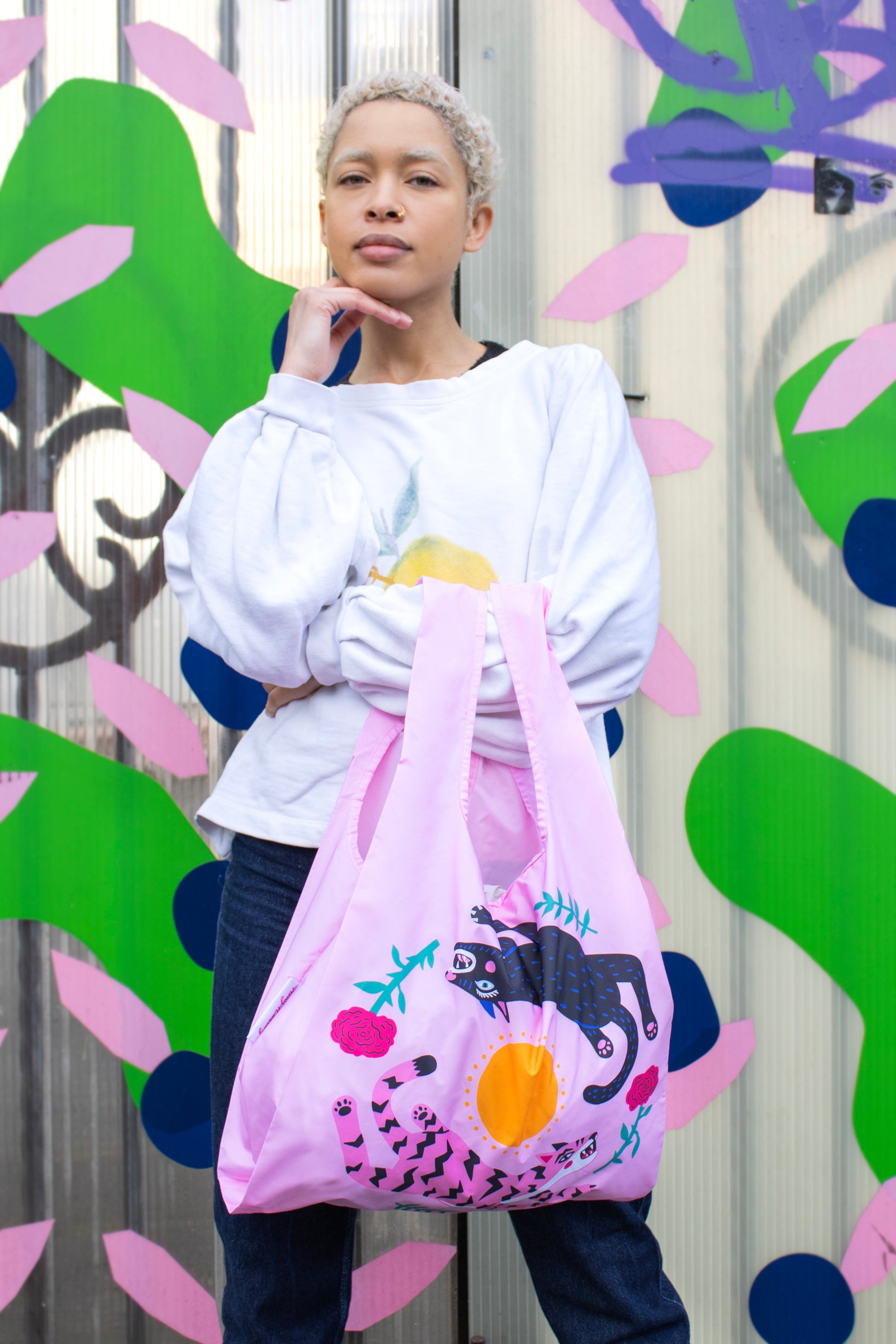 Leaping Cats is one of three funky Kind Bags designed by Amy Hastings, a British artist who blends her passion for pink and kitsch!