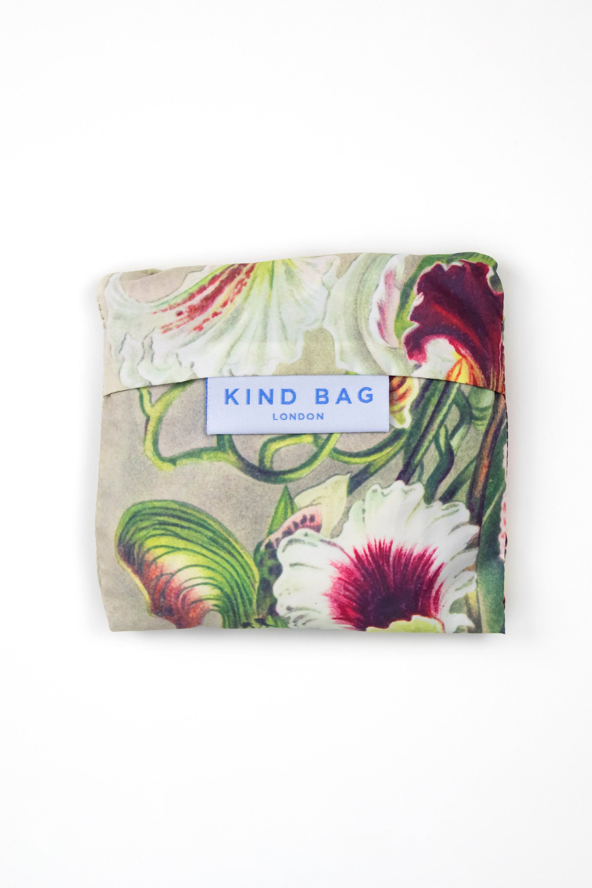 Stylish, strong, roomy and folding up easily into a small, handy pouch, we just love Kind Bag's Museum-inspired recycled plastic shoppers like this one featuring 'Orchidae' by Haeckel.