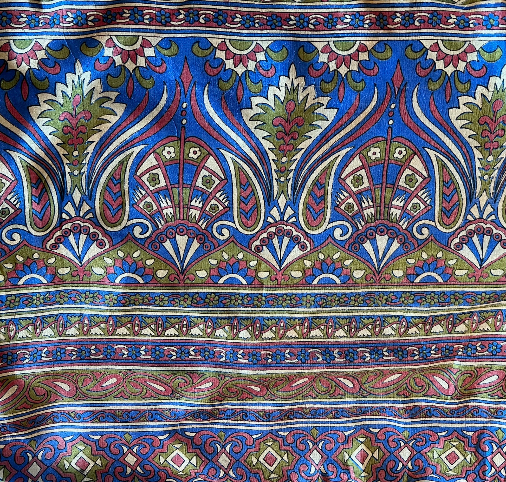 A vibrant patchwork cushion cover crafted from upcycled sari and brocade fabric.