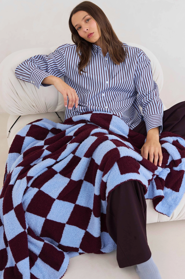 This chic checkboard design throw has a cosy, super-soft microfleece texture and is made from 100% recycled materials.
