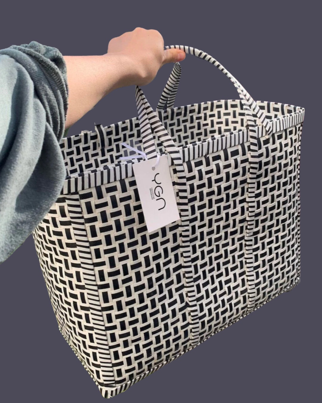 UPCYCLED MAYANMAR BASKET | BLACK + WHITE